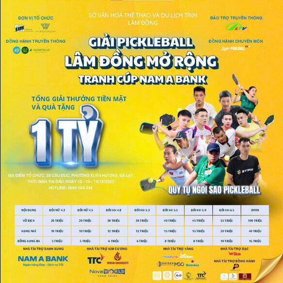 GIẢI PICKLEBALL LÂM ĐỒNG MỞ RỘNG TRANH CÚP NAM A BANK - ĐÔI HỖN HỢP 5.5